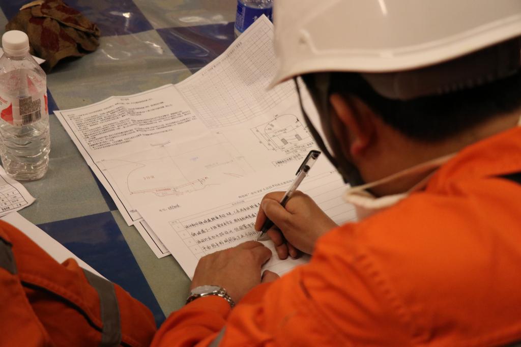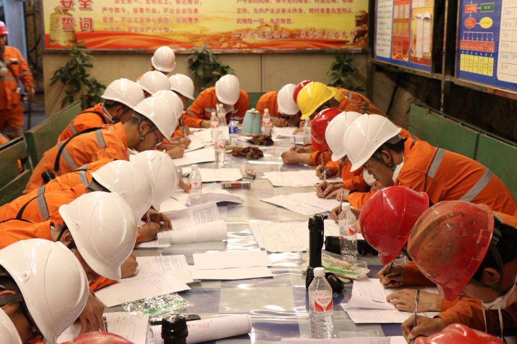 參賽人員經(jīng)過安全員入坑安全培訓(xùn)后前往本次考試地點(diǎn)塘子凹坑的主力采場3-11-5E,由于高手云集,最后一輪比賽標(biāo)準(zhǔn)更高,要求更嚴(yán)。比賽現(xiàn)場,選手們信心滿滿,躍躍欲試,氣氛嚴(yán)肅卻又不失親切。拿到考題后認(rèn)真勾畫,緊抓重點(diǎn)。在迎頭上,選手們沉著迎戰(zhàn),從容不迫,認(rèn)真排查現(xiàn)場與施工單上“異樣”,反復(fù)查看,爭取不漏任何細(xì)節(jié)。