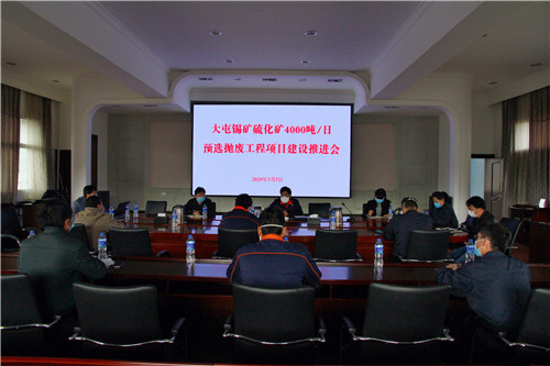 3月5日,大屯錫礦在礦五樓會議室召開硫化礦4000噸/日預選拋廢工程項目建設推進會,強調疫情防控不松勁,復工復產再加力,與時間賽跑,加快推進硫化礦4000噸/日預選拋廢工程項目建設,將保障大屯錫礦生產經營和高質量可持續(xù)發(fā)展的各項任務落到實處。