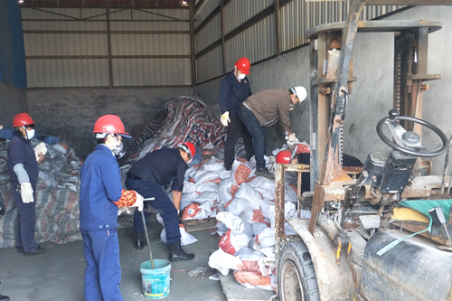 為確保銅渣順利發(fā)運(yùn),云湘黨支部急生產(chǎn)之所急,迅速組織由黨員和業(yè)務(wù)骨干組成8人突擊隊(duì),于11月21日、22日投入到緊張裝卸任務(wù)中。在場地狹窄、大型設(shè)備施展不開等問題下,只能依托人工背運(yùn)到叉車,再通過叉車轉(zhuǎn)運(yùn)到卡車,銅渣一袋凈重30公斤,需要來回翻騰兩次,沒開工多久,突擊隊(duì)員已汗流浹背,氣喘吁吁。盡管如此,突擊隊(duì)員一直緊咬牙關(guān),不顧灰塵,不顧呼出的熱氣模糊了眼鏡,不顧大滴的汗水從安全帽流出,一鼓作氣把60多噸銅渣及時(shí)補(bǔ)裝到位,保證銅渣銷售外運(yùn)工作正常開展。