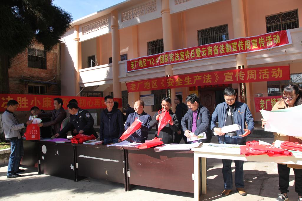 12月6日下午,老廠鎮(zhèn)政府和老廠分公司在老廠街俱樂部聯(lián)合開展“12·4”國家憲法宣傳日暨云南省法制宣傳周、老廠地區(qū)《安全生產(chǎn)法》宣傳周活動。