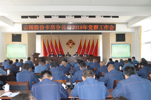 會議分別就組織工作、宣傳思想工作、工會工作、共青團工作、社會治安綜合治理工作、信訪保密工作作了總結和安排;錫業股份2018年達標創建示范黨支部運輸鉆探車間黨支部作了黨建工作經驗交流;簽訂了2019年意識形態工作責任書、社會治安綜合治理目標責任書和信訪維穩責任書;表彰了2018年度黨群工作先進集體和個人。