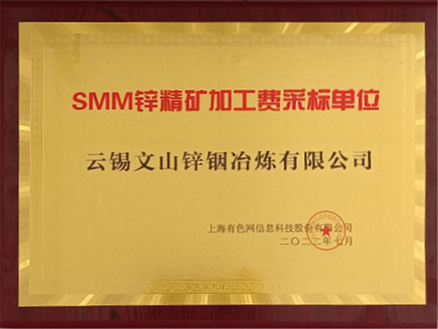 近日,文山鋅銦冶煉有限公司被上海有色網(wǎng)(SMM)評為“SMM鋅精礦加工費采標單位”。