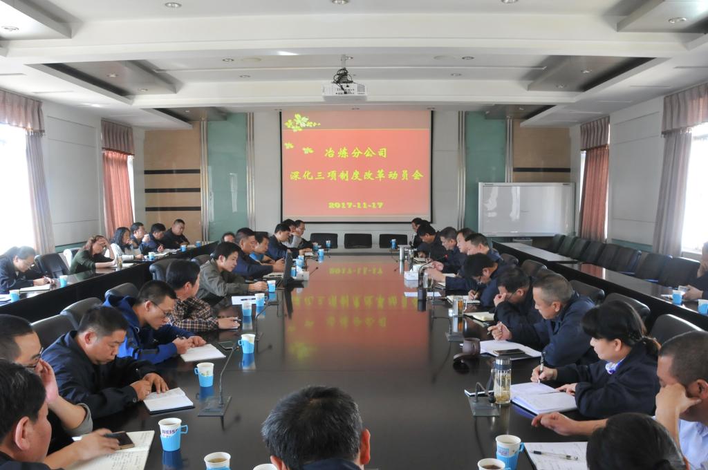 深化人事、勞動(dòng)和收入分配“三項(xiàng)制度”改革是企業(yè)自身轉(zhuǎn)型發(fā)展的內(nèi)在要求,也是增強(qiáng)企業(yè)活力和競(jìng)爭(zhēng)力,提升管理水平,促進(jìn)企業(yè)持續(xù)健康發(fā)展的重要舉措。2017年11月17日,冶煉分公司召開“三項(xiàng)制度”改革動(dòng)員大會(huì),領(lǐng)導(dǎo)班子運(yùn)籌帷幄,布局落實(shí),按照依法依規(guī)、逐步推進(jìn)和公開、公平、公正的原則,對(duì)黨委工作部、人力資源部、電爐車間等部門車間進(jìn)行職能合并或撤銷建制,力求在優(yōu)化組織人力資源配置、激活內(nèi)部潛力上謀求新突破,在整合組織機(jī)構(gòu)、形成企業(yè)員工利益共同體上展現(xiàn)新作為,在推進(jìn)薪酬分配改革、健全完善體制機(jī)制上激發(fā)新活力。