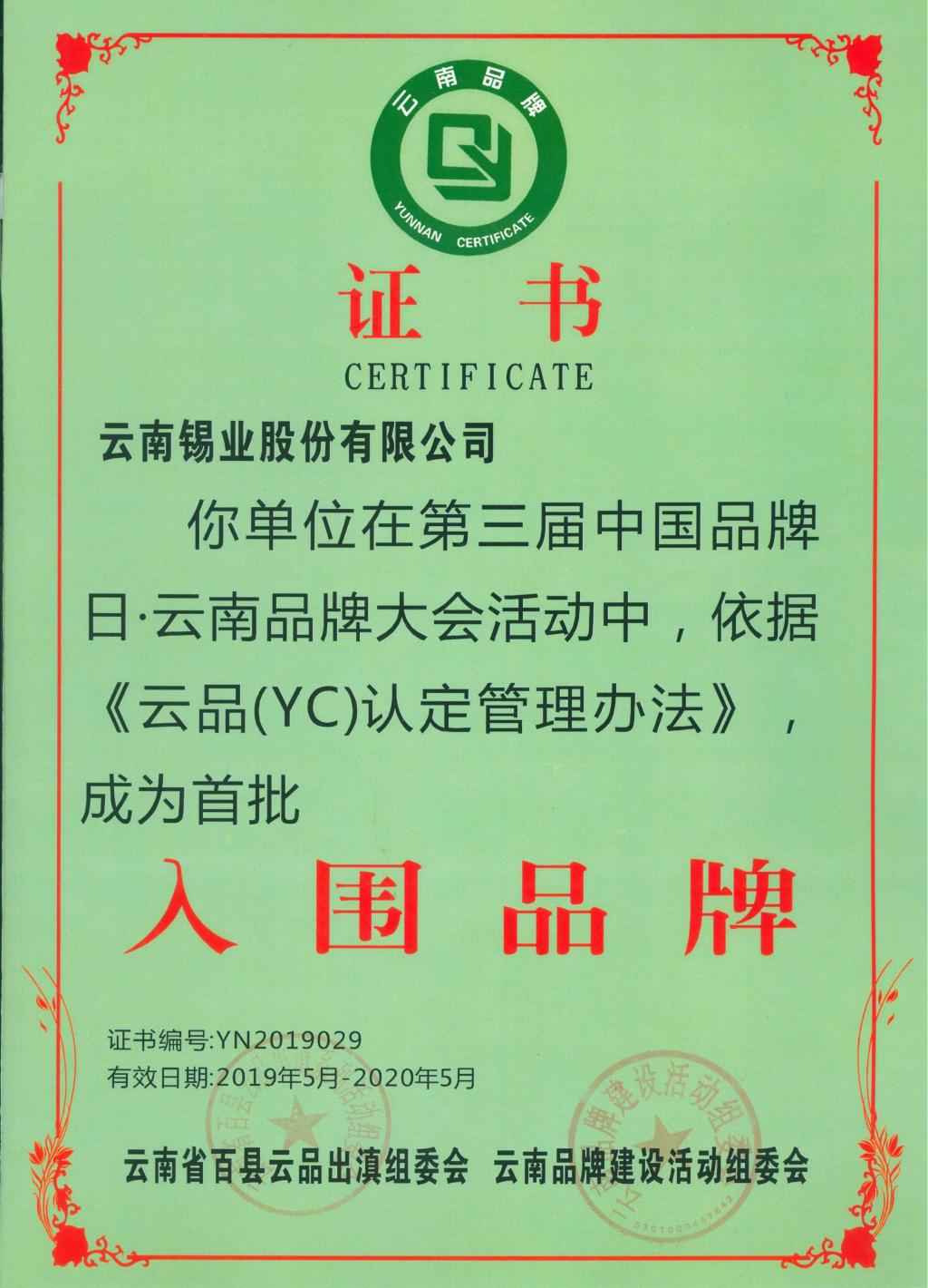 錫業(yè)股份入圍云南首批YC品牌企業(yè)