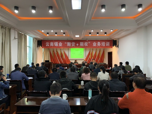 3月5日,錫業股份在昆明高新區辦公樓開展為期一天的期貨套期保值業務培訓,邀請知名期現實戰專家、瑞達期貨產業事業部總經理張天勇,為公司涉及期貨業務單位人員和部門高級管理人員講授期貨和期權知識。