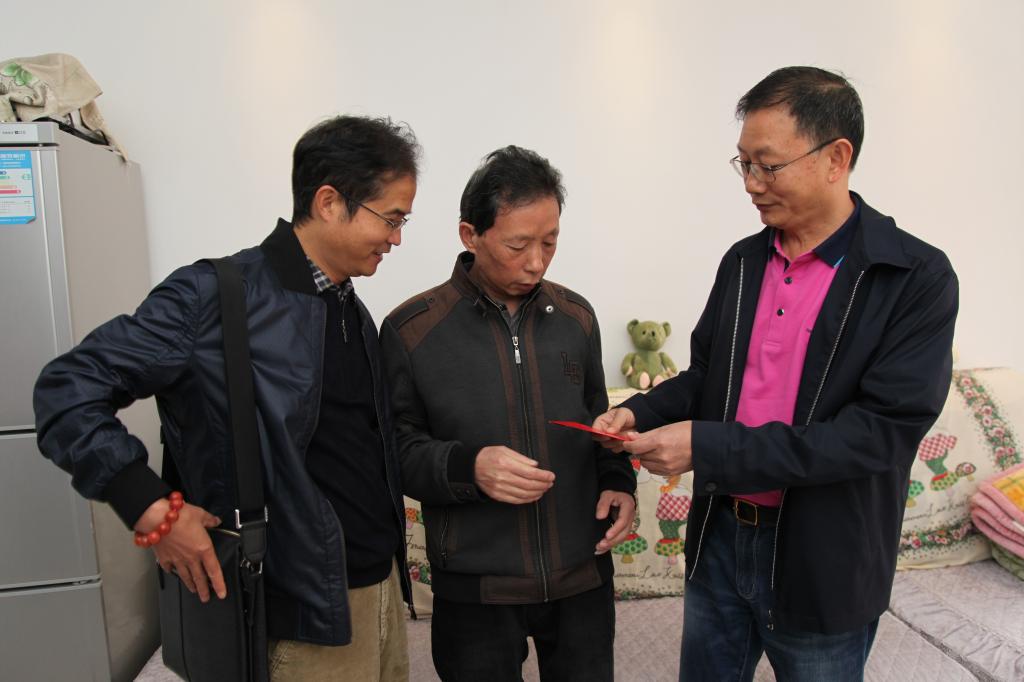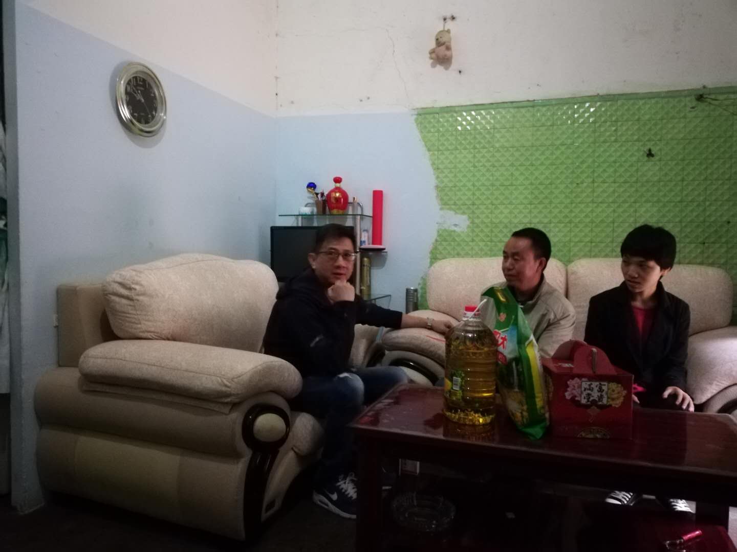 錫業股份副總經理童祥走訪慰問老廠分公司困難職工周金偉、董福信、羅國偉。(李拉發/攝)