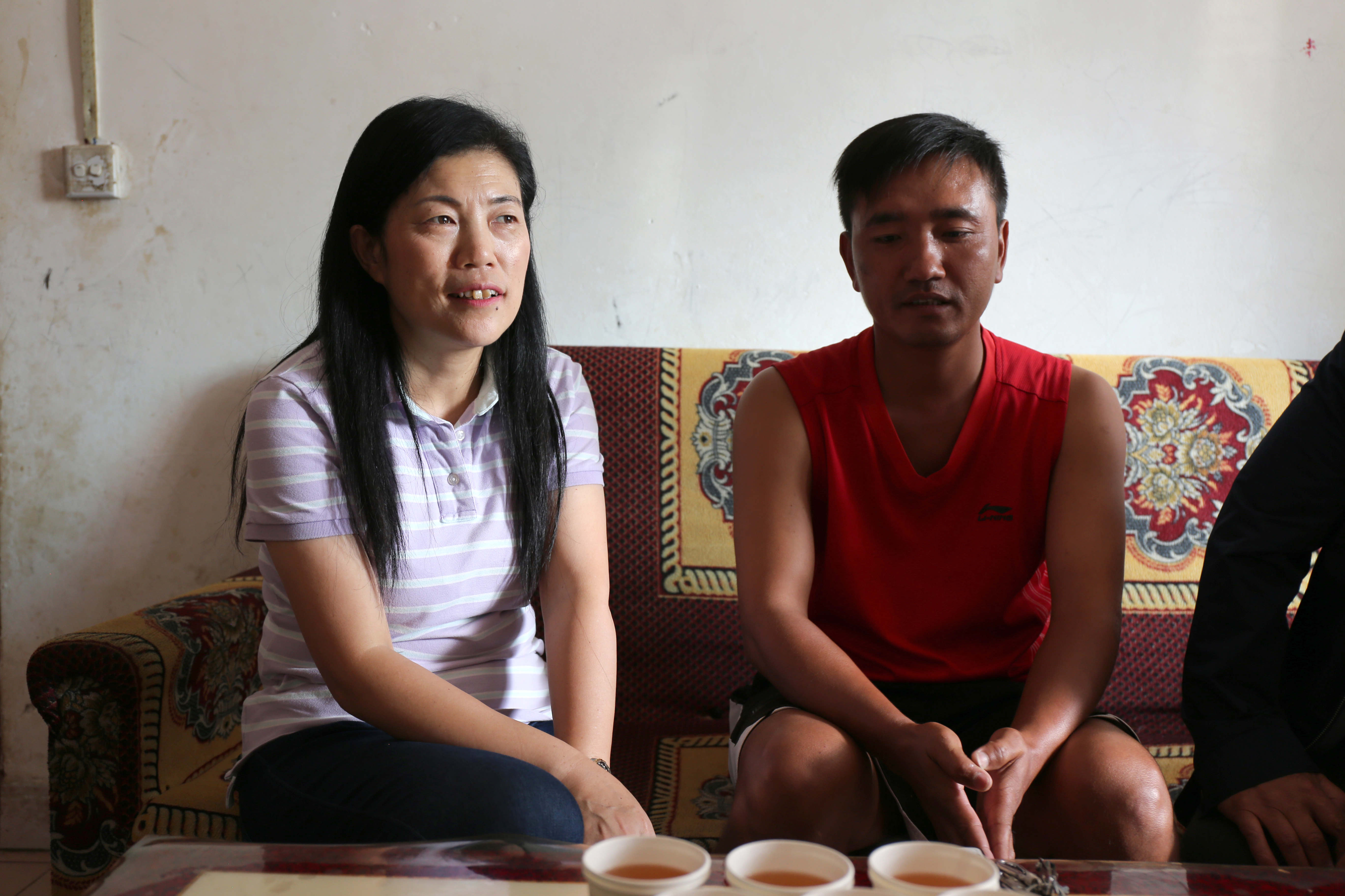 錫業股份黨委副書記、副董事長、總經理楊奕敏走訪慰問卡房分公司困難職工楊元福、李嘎里。(陳 紅/攝)