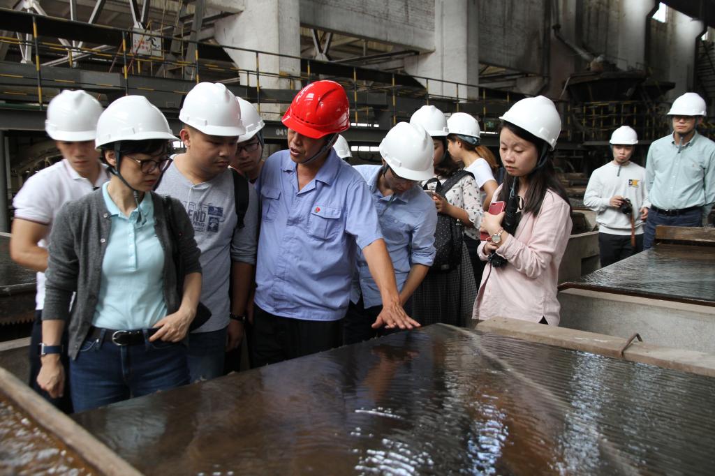 學(xué)員們先后參觀了熔煉車間精礦倉(cāng)、反射爐舊址、頂吹爐主控室、精煉車間電熱連續(xù)結(jié)晶機(jī)、圓盤自動(dòng)澆鑄機(jī)及錫庫(kù),詳細(xì)了解了錫冶煉流程的設(shè)備原理、操作控制、工藝原理、入爐原料品位等方面情況。