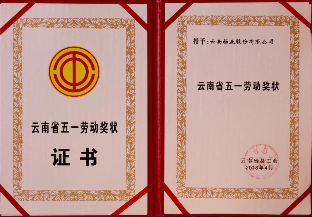 錫業股份獲“云南省五一勞動獎狀”榮譽稱號