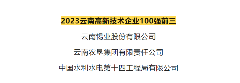 近日,由云南省企業(yè)聯(lián)合會、云南省企業(yè)家協(xié)會公開發(fā)布的“2023云南企業(yè)100強”新鮮出爐。錫業(yè)股份位列2023云南高新技術(shù)企業(yè)100強第1位,2023云南制造業(yè)企業(yè)100強第2位。