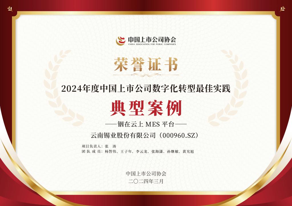 華聯鋅銦榮獲“第三屆2024年度中國上市公司數字化轉型”最佳實踐典型案例
