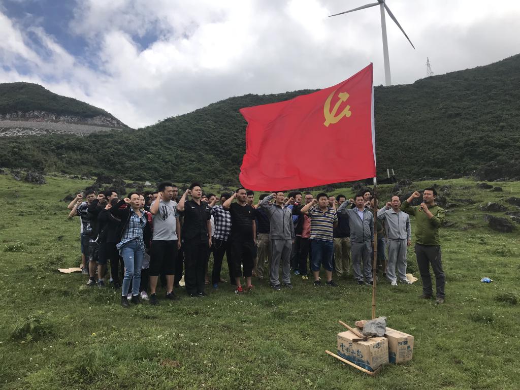 經過3個多小時的路程,到達了目的地。延綿不斷的綠草地,抬手可觸的天空,不遠處悠悠轉動的風力發電塔,讓黨員們異常興奮。有的大口呼吸著新鮮空氣,有的在綠地上隨意奔跑,有的登高望遠,有的不停擺造型自拍。一番開心后,藍天白云下,黨員們在鮮紅的黨旗前重溫了入黨誓詞,并圍坐在黨旗周圍齊聲誦讀黨章、學習十九大知識,歌唱“沒有共產黨就沒有新中國”“團結就是力量”。隨后還開展了丟手絹、泡泡糖游戲,讓大家重拾童趣、歡聲笑語不斷。