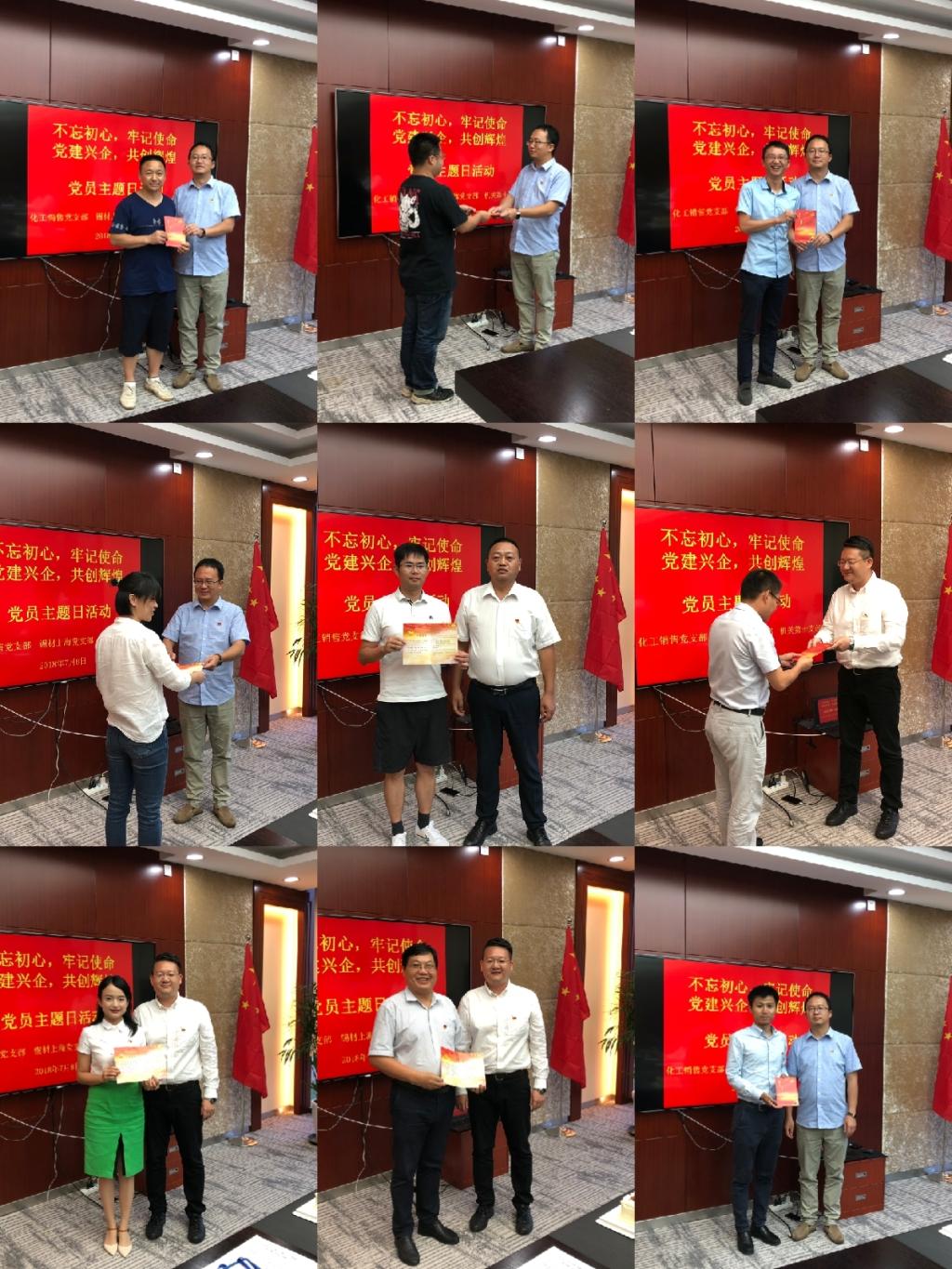 在下午的活動中,各位黨員暢談了對“紅船精神”的感受,滿懷激情的朗誦《可愛的中國》《七月的天空》等紅色詩歌,還開展了“主題知識競賽”;三位黨支部書記為過“政治生日”的黨員同志贈送了生日禮物、送上生日蛋糕;全體黨員再次舉起右手面對黨旗莊嚴宣誓,重溫入黨誓詞。
