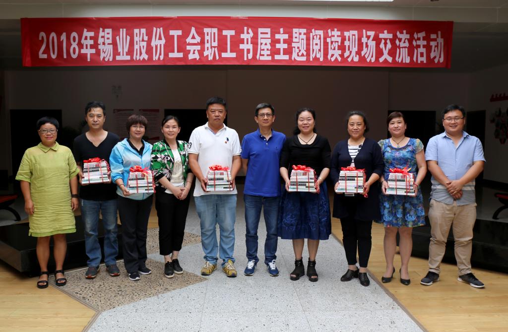 為推動職工書屋建設,突出職工書屋教育引導功能,7月19日,錫業股份工會在錫博物館四樓大廳職工書屋舉辦“閱讀經典好書 爭當工匠人才”職工書屋主題閱讀現場交流活動。錫業股份黨委委員、工會主席李林為獲得“讀一本好書”征文活動的獲獎作者頒獎,并向錫業股份所屬單位工會贈送書籍。