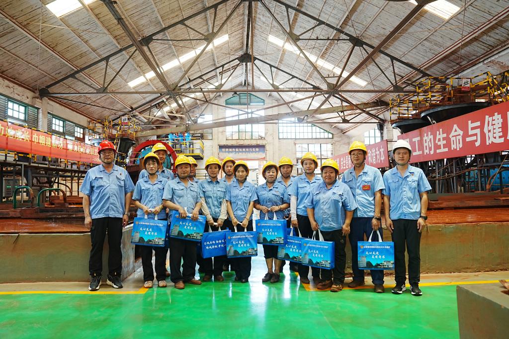 仲夏七月,云錫生產一線“熱辣滾燙”,干部職工勠力同心,接續奮戰全年任務目標。各級工會組織認真貫徹落實習近平總書記在“五一”國際勞動節前夕的重要指示精神,持續深化“工會溫暖進萬家”工作品牌,推進控股公司工會送溫暖活動常態化、常效化開展,切實將錫業股份黨委及工會組織的溫暖送到一線職工心坎上,致敬高溫下的每一份堅守。