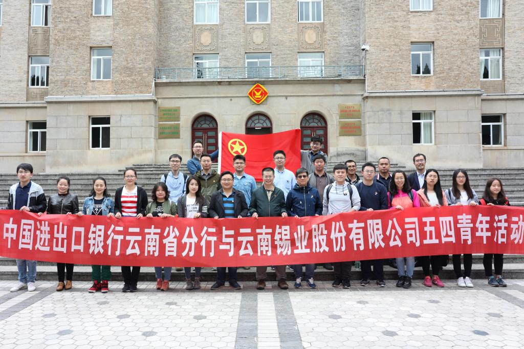 5月5日,中國進出口銀行云南省分行黨委委員、行長助理黃旭華率團員青年,到錫業股份開展“五.四”青年節“不忘初心跟黨走,牢記使命建新功”主題活動。錫業股份黨委委員、工會主席李林、團委書記王戰蒙及部分所屬單位團委負責人熱情接待了來賓。
