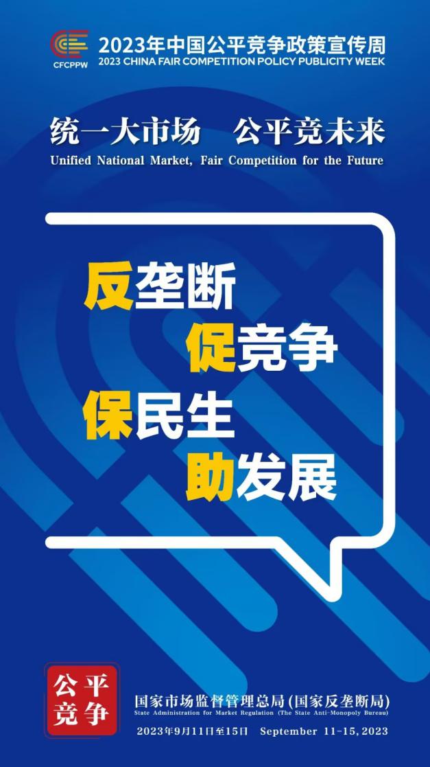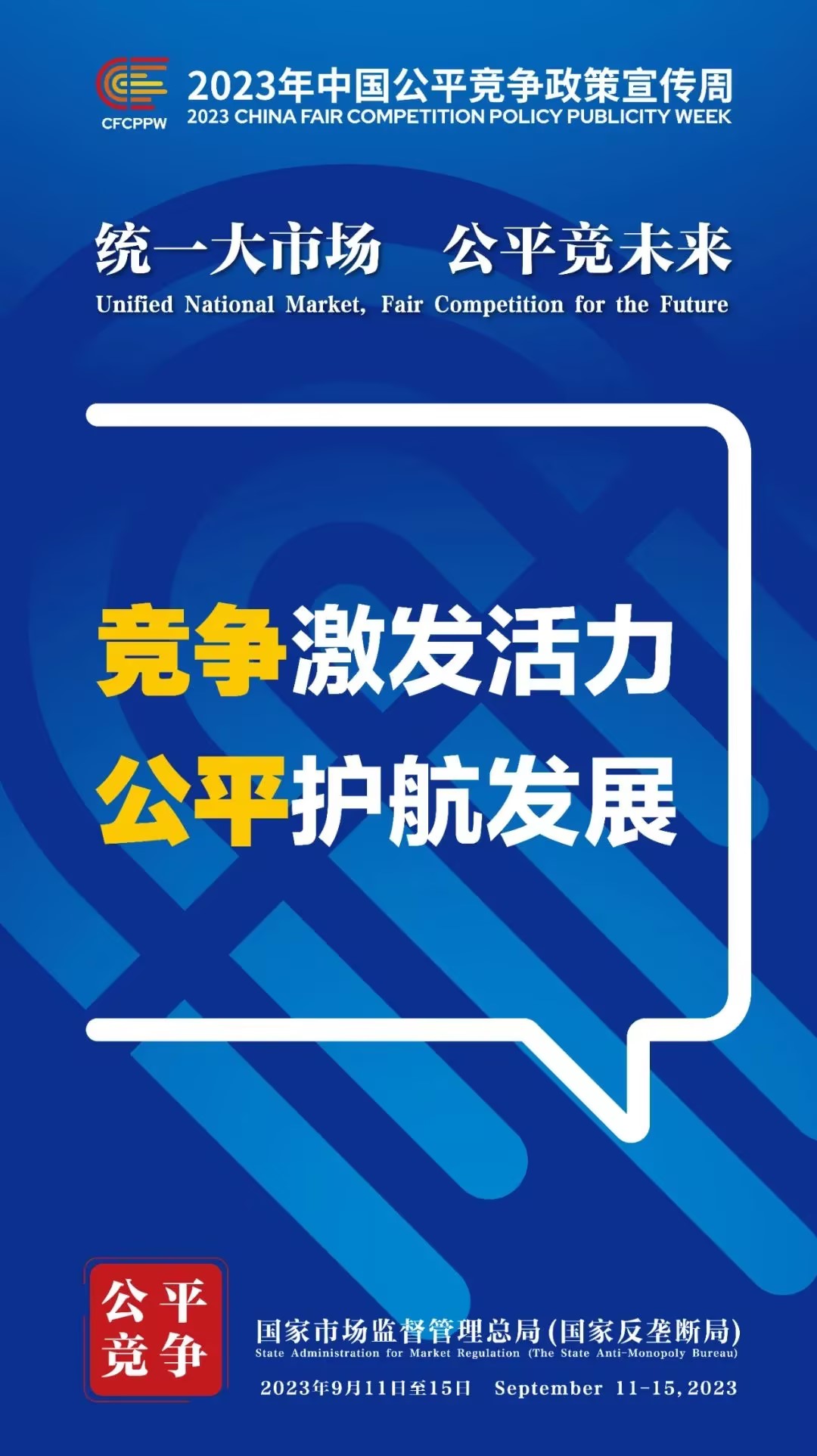 9月11日至15日為2023年中國公平競爭政策宣傳周,主題是“統(tǒng)一大市場 公平競未來”。旨在大力加強公平競爭宣傳倡導(dǎo),讓公平競爭理念更加深入人心、公平競爭文化更加蔚然成風(fēng),為加快建設(shè)全國統(tǒng)一大市場、優(yōu)化市場化法治化國際化一流營商環(huán)境、推動高質(zhì)量發(fā)展?fàn)I造良好社會氛圍。